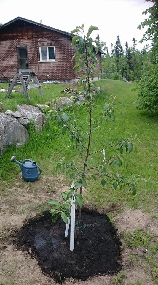 I planted a tree! It took 2 days to dig a hole for this thing, thanks to my yard being completely full of rocks. But it was worth it! I have wanted a fruit tree for quite a while, so I took the plunge and got an apple tree ![]()