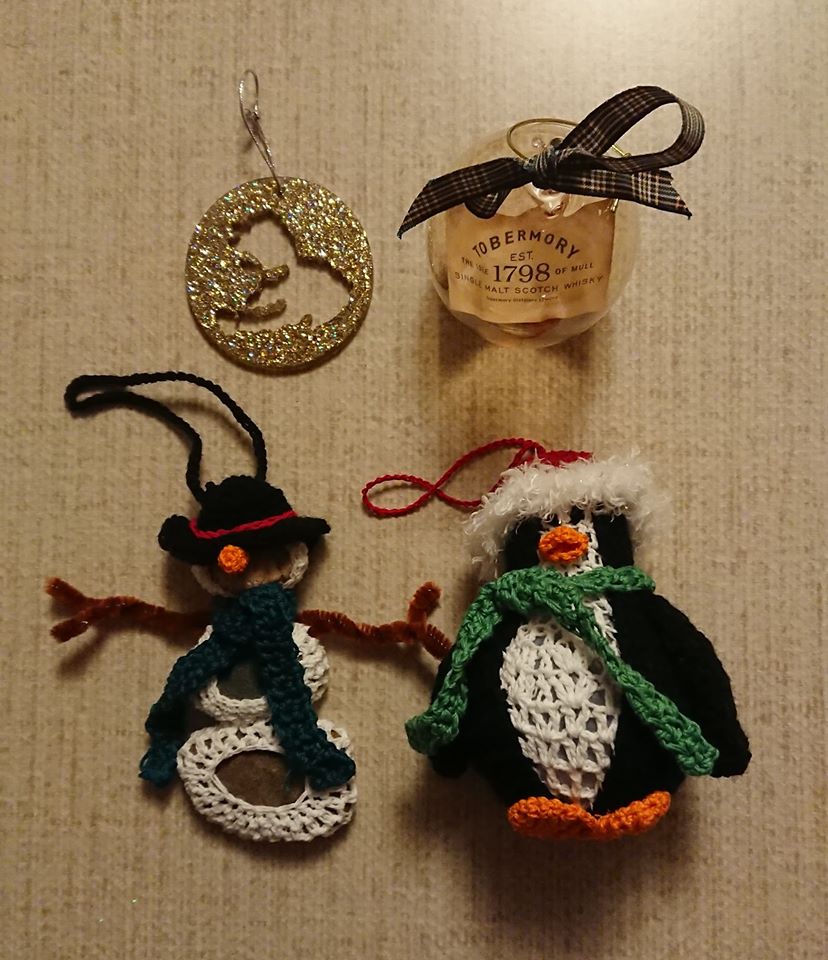 The top two were given to me as gifts a few years ago and the bottom two I bought at the United Church Bazaar today. Beautiful ornaments handmade by Sherry Bin. My collection is well on its way