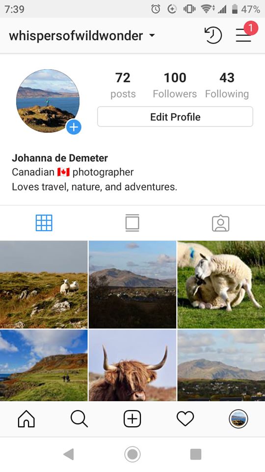 I have 100 followers on my public Instagram! I was actually really nervous about making a public page for my photography. I had no idea if people would even like my pictures, but I am so glad I put them out there. My confidence has been boosted and I am excited to spend more time with my camera 😊
