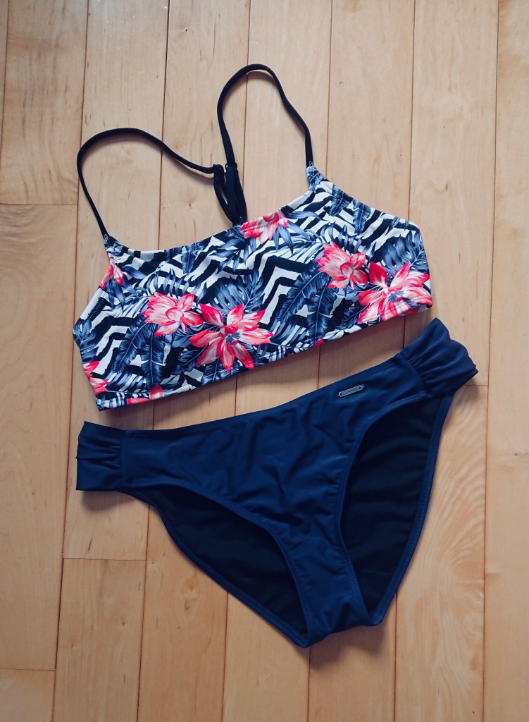 As a teen, I was super scrawny and had no trouble fitting into one pieces and tankinis that did the job. I never cared much how they looked, as long as they stayed in place whilst swimming. I still remember my favourite one-piece. Dark blue with a zipper up the back, the kind you might find on a wet suit. It made me feel like a scuba diver, and with aspirations of being a marine biologist, that is exactly how I wanted to feel. When I turned 18 however, I felt that maybe it was time to get a “grown up” bathing suit, which is how I viewed bikini tops. Now when I say bikini, I don’t mean tiny triangles of fabric held together by string. I am more for robust bikini tops. Something with good coverage, support, and most importantly, something that stays on in the water.
