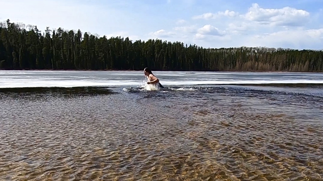 I did attempt to do the dip last spring. I was waiting for a nice warm day while still having enough ice on the lake so it would work for the challenge. My mom and I had been making regular trips out to our community’s swimming spot, Cedar Point, to hike, bird watch, and keep an eye on the lake ice. One day we saw that the ice had receded substantially, and I decided that I would go for my dip 2 days later. Well, 2 days later was a beautiful sunny day, and when I arrived at Cedar Point, there was no ice. Not one speck of ice left on the lake. I ended up jumping into the lake with a 2mm shorty wetsuit on, but without ice, I could not scratch the dip of my list.